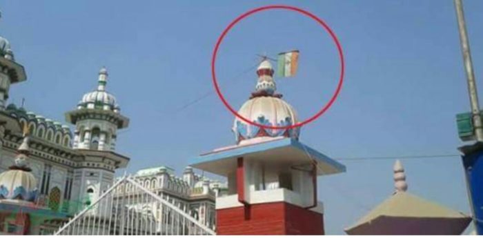 जनकपुर ,१ जेठ । जानकि मन्दिरमाथि भारतकाे झण्डा राखिएकाे छ ।नेपालको प्रसिद्ध तिर्थ-धाम जनकपुरको जानकी मन्दिरमाथि भारतको झण्डा राखेर नेपालको स्वाभिमानमाथि प्रहार गर्ने काम भएको स्थानिएले बताएका छन ।