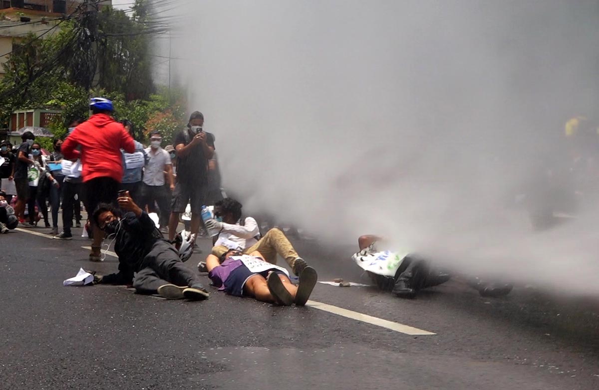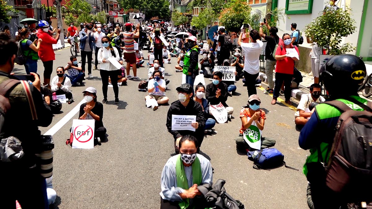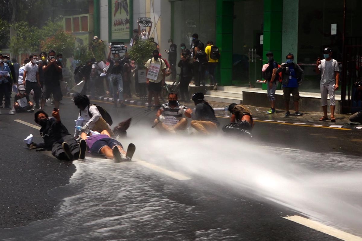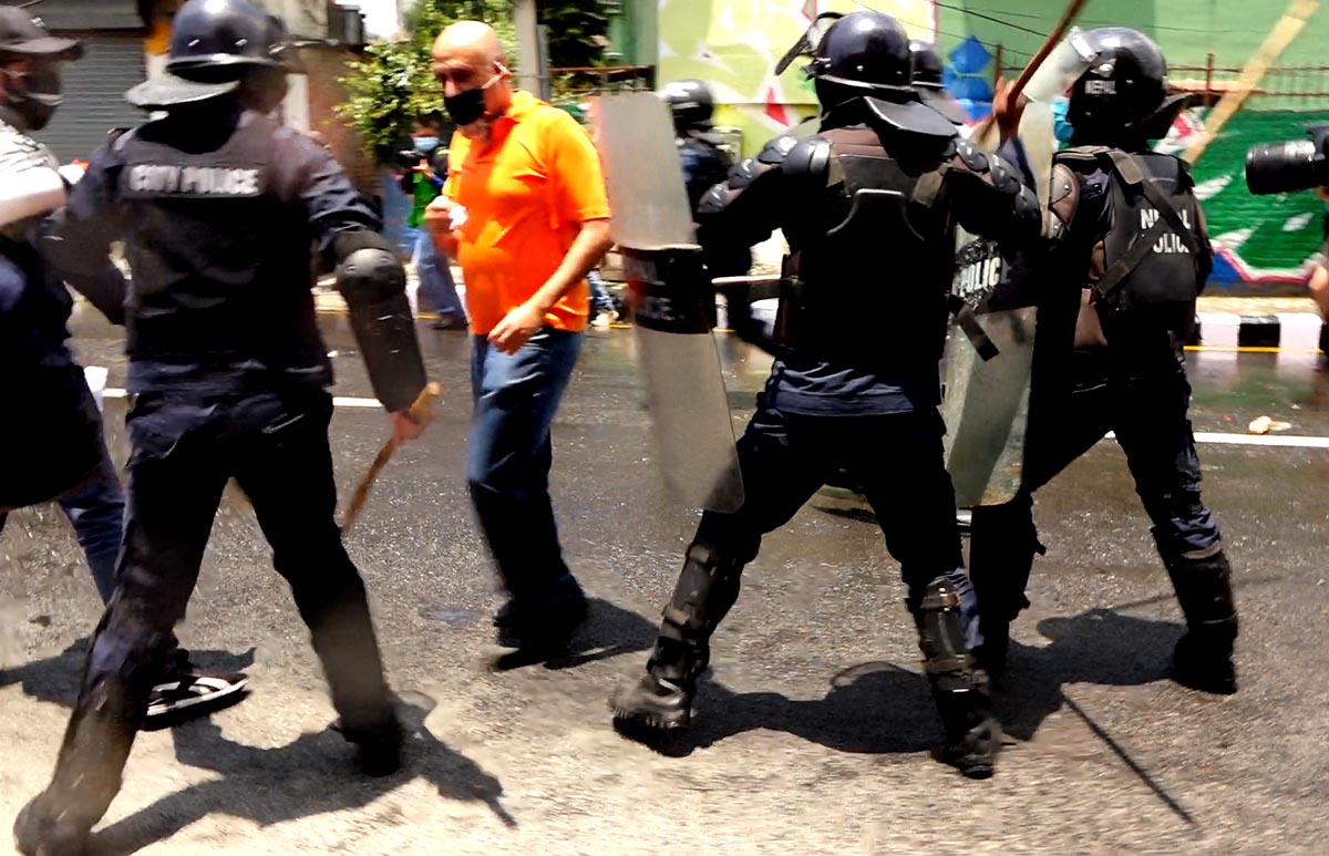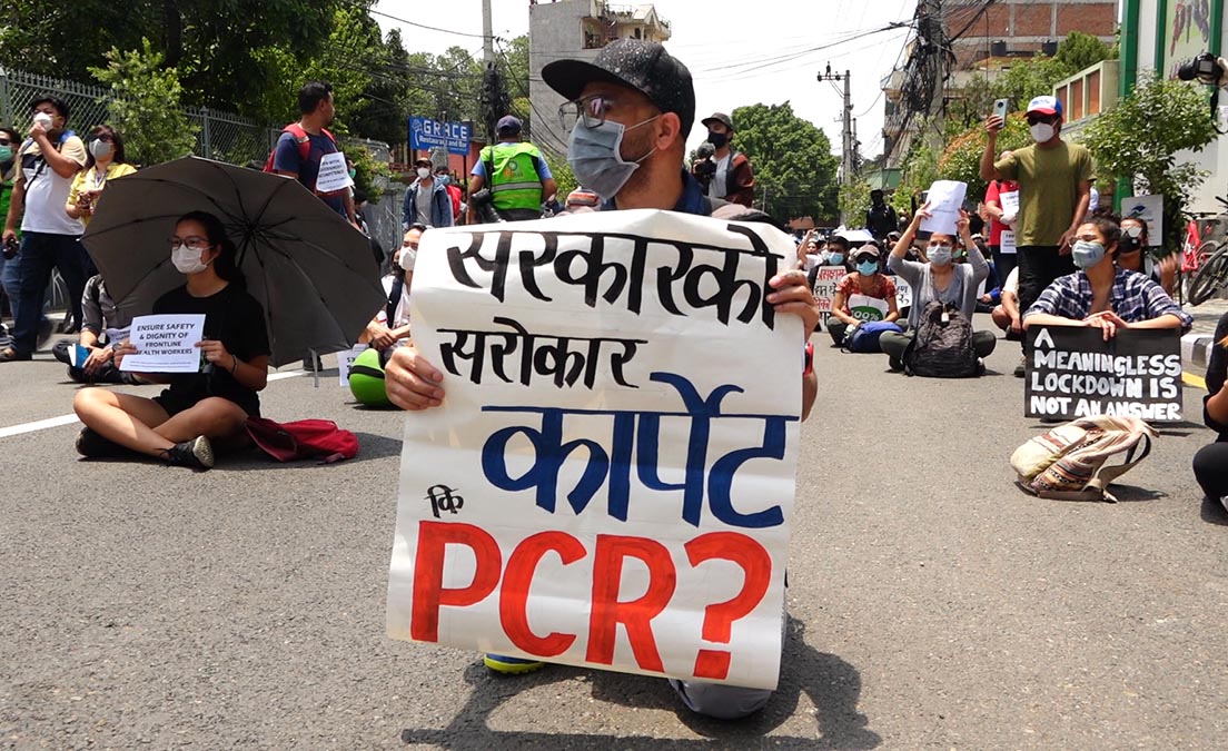 हाम्रा सहकर्मी मुकुन्द कालिकोटेकाअनुसार प्रहरीले प्रदर्शनकारीलाई पानीको फोहोरा हानेको थियो । सोही क्रममा प्रहरी र प्रदर्शनकारीबीच झडप पनि भएको थियो । प्रदर्शनकारीहरुले कोरोना भाइरसको परीक्षण पीसीआर विधिबाट मात्रै गर्नुपर्ने, क्वारेन्टिन सेन्टरहरु पूर्ण सुरक्षित बनाउनु पर्ने तथा सबैको जीवन रक्षा गर्नु पर्ने लगायतका माग अघि सारेका छन् । तस्विर : मुकुन्द कालिकोटे, रिपोर्टर्स नेपाल डटकम