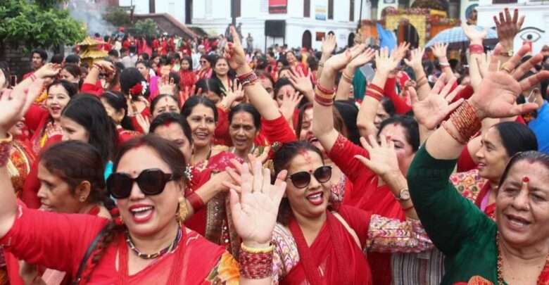 हिन्दु महिलाहरु तीज मनाउँदै, शिवालयहरुमा घुइँचो