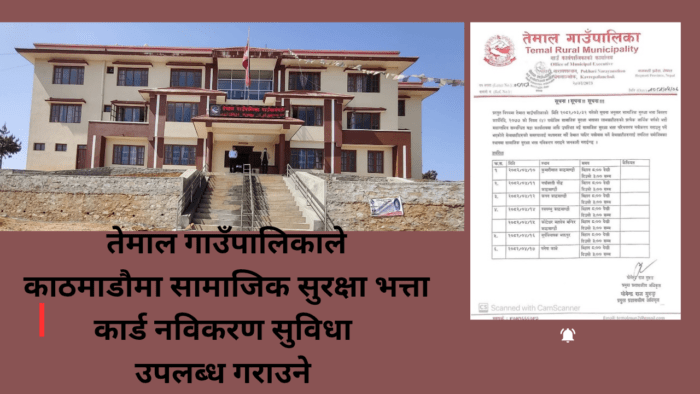 तेमाल गाउँपालिकाले सम्बन्धित नागरिकहरूलाई तोकिएको मिति, समय र स्थानमा आवश्यक कागजातसहित उपस्थित भई कार्ड नविकरण गराउन आग्रह गरेको छ।